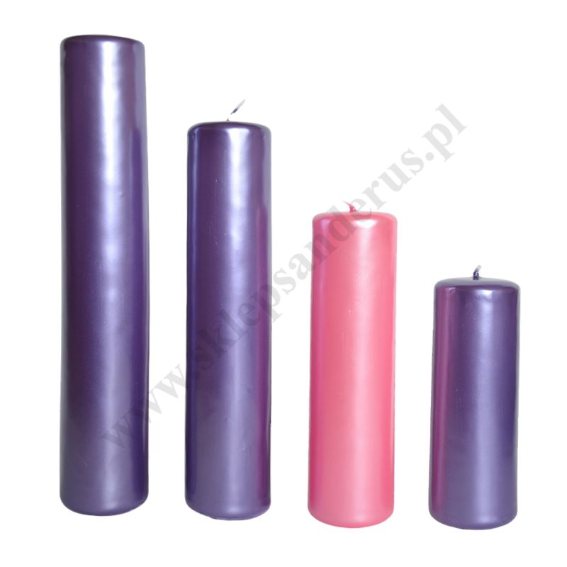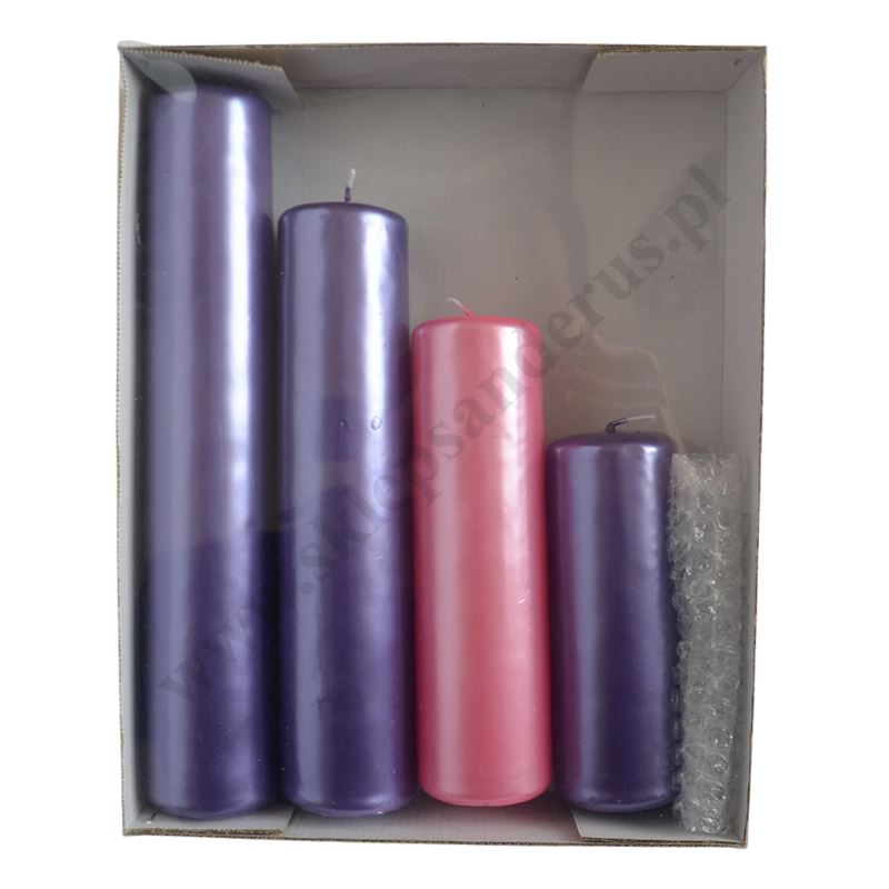 Komplet świec do wieńca adwentowego o wysokości świec kolejno 30 cm, 25 cm, 20 cm, 15 cm i średnicy świec 5.5 cm.