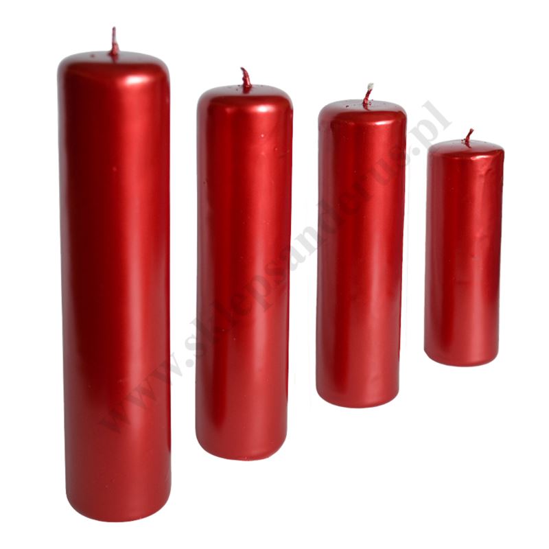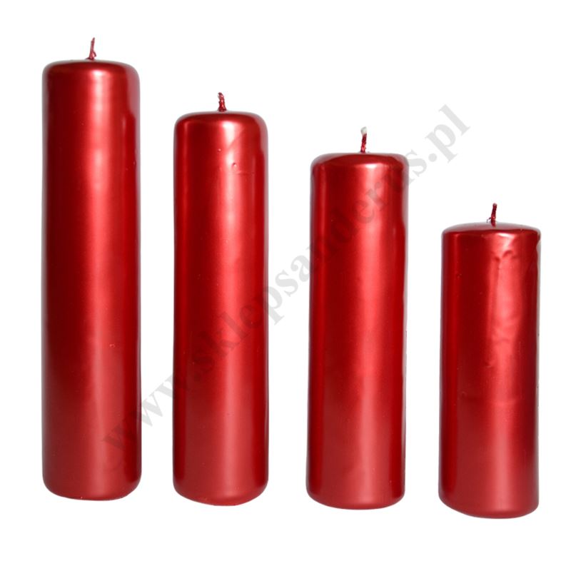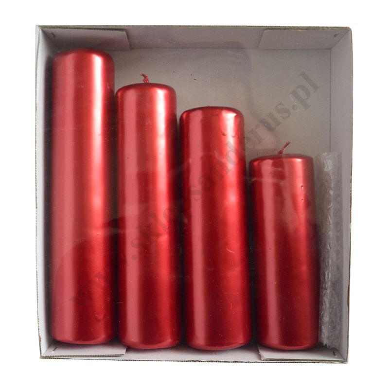 Komplet świec do wieńca adwentowego o wysokości kolejno 25 cm, 22 cm, 19 cm, 16 cm i średnicy 5.5 cm.