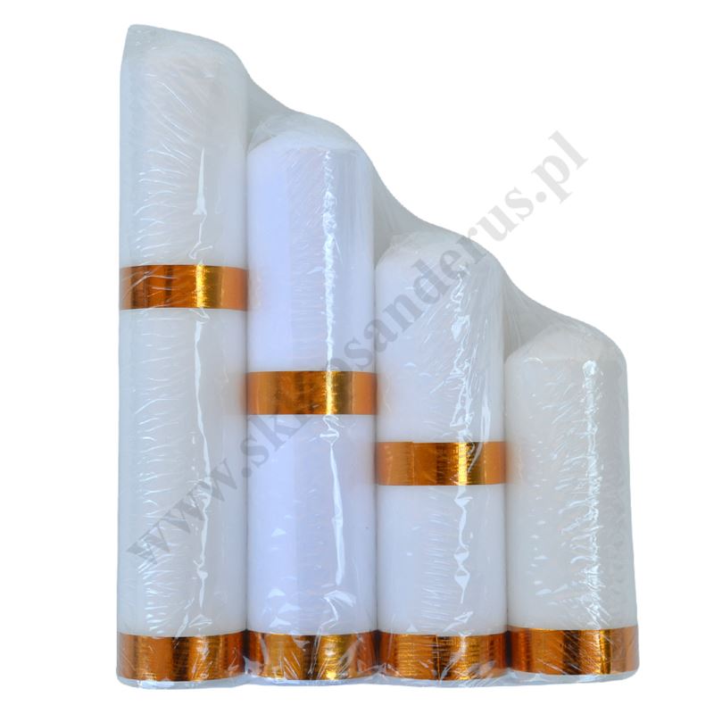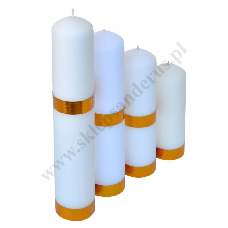 Komplet świec parafinowych białych do wieńca adwentowego, wymiary poszczególnych świec: