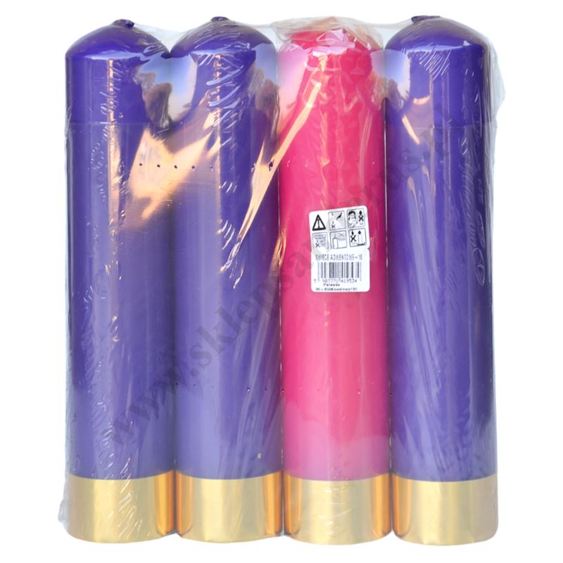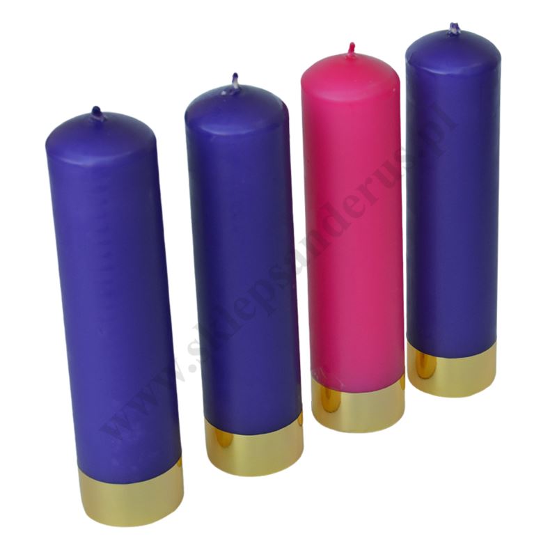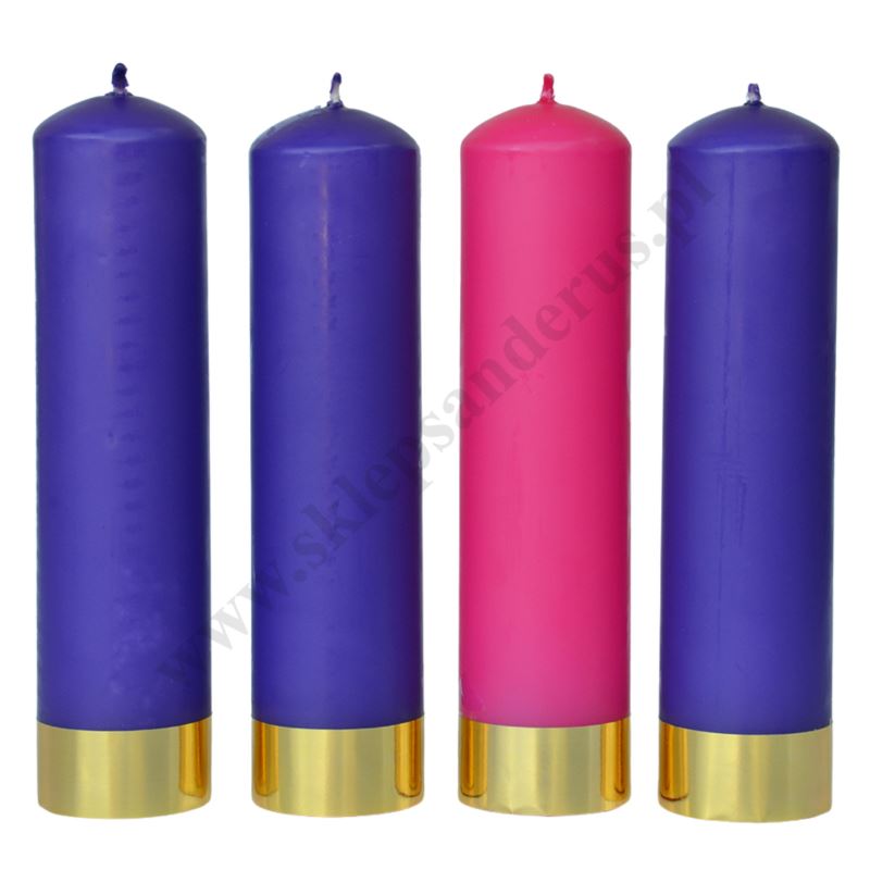 Komplet świec do wieńca adwentowego, wysokość świec 24 cm, średnica 6 cm.