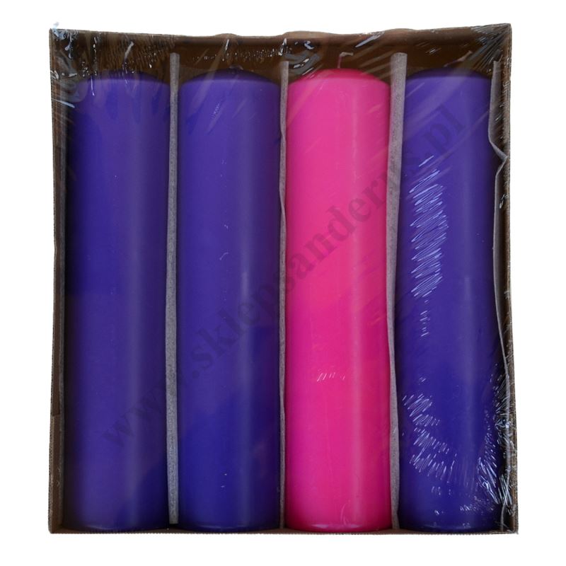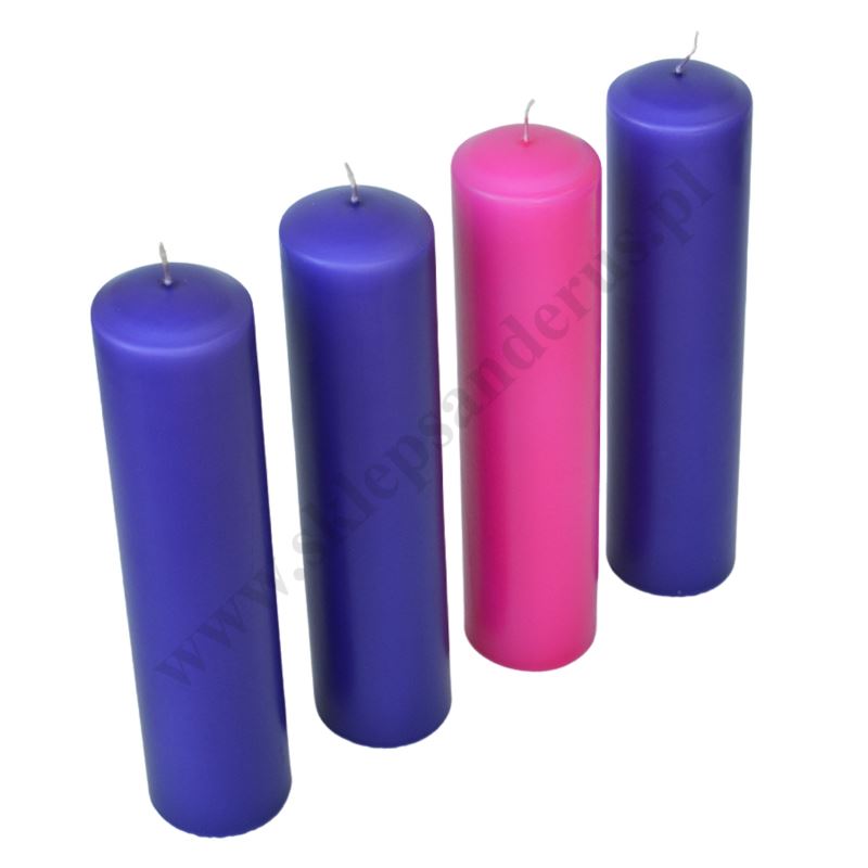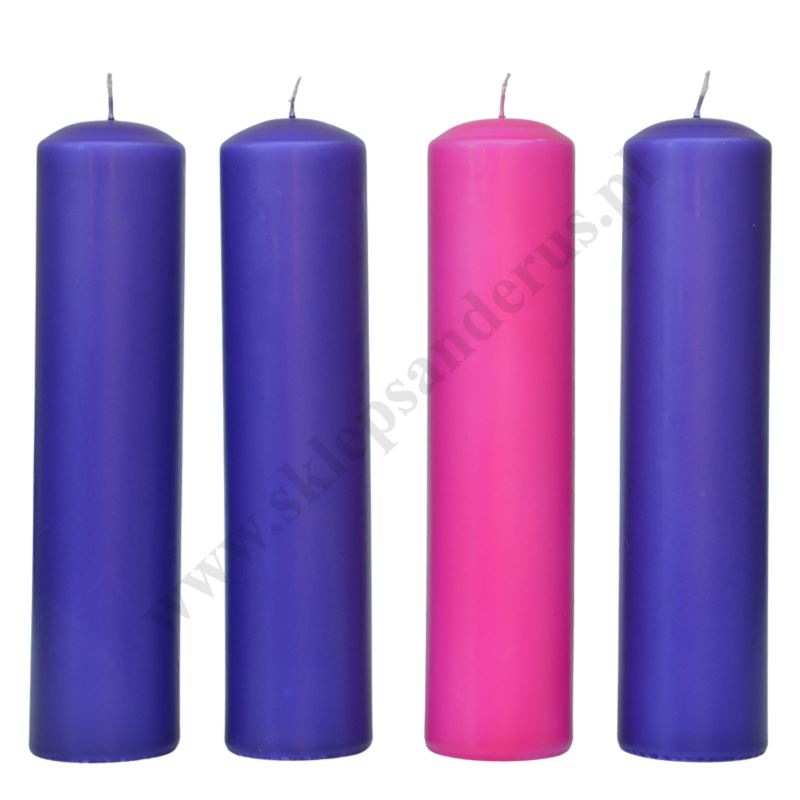 Komplet czterech świec do wieńca adwentowego o wysokości 30 cm i średnicy 7 cm.