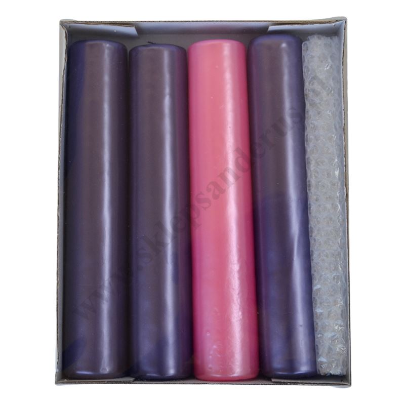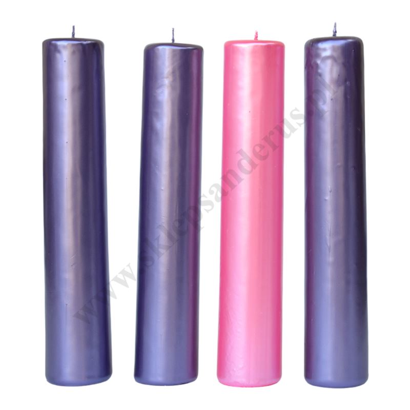 Komplet świec parafinowych do wieńca adwentowego, wysokość świec 30 cm, średnica 6 cm.
