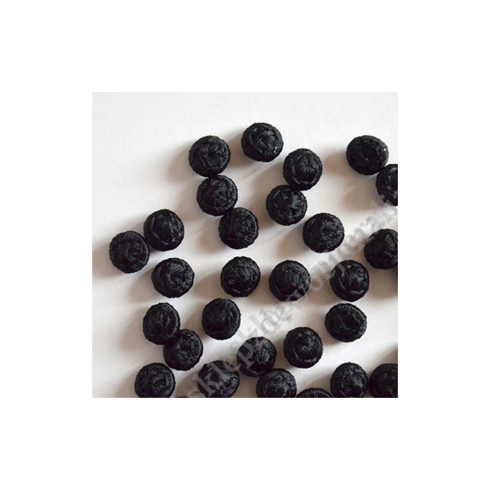 Komplet guzików do sutanny (36 sztuk) powleczonych bawełnianą czarną nicią.