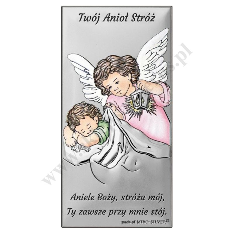 ANIOŁ STRÓŻ - OBRAZEK SREBRNY 10 x 20 cm - 6753/2XRCOL