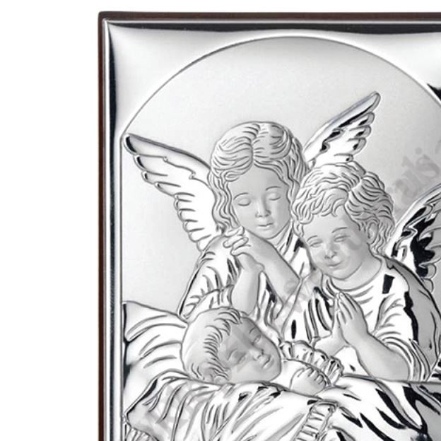 Srebrny obrazek przedstawiający Anioły czuwające nad śpiącym dzieckiem. Rozmiar obrazka 6.8 x 8.8 cm. PONIŻEJ W PRODUKTACH POWIĄZANYCH ISTNIEJE MOŻLIWOŚĆ ZAMÓWIENIA OKAZJONALNEJ DEDYKACJI NA TABLICZCE LUB REWERSIE OBRAZKA.