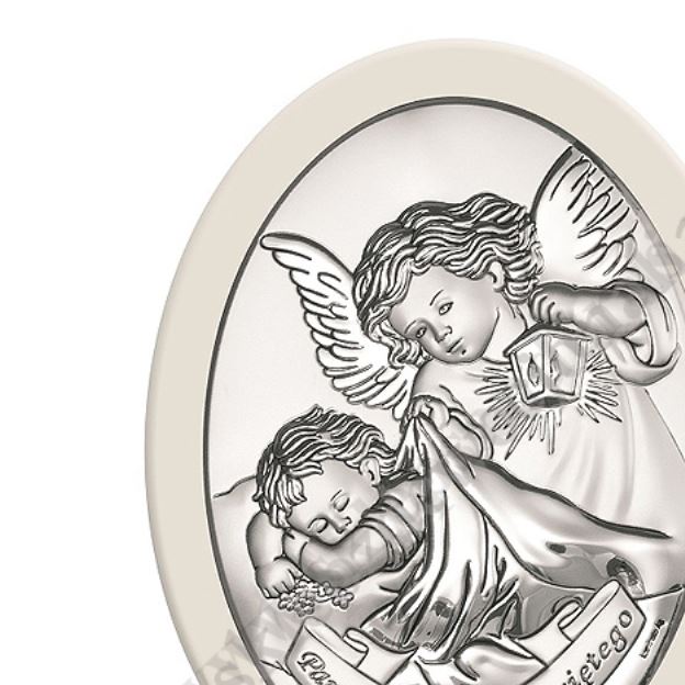 ANIOŁ STRÓŻ - OBRAZEK SREBRNY NA BIAŁYM DREWNIE - 6353/2W