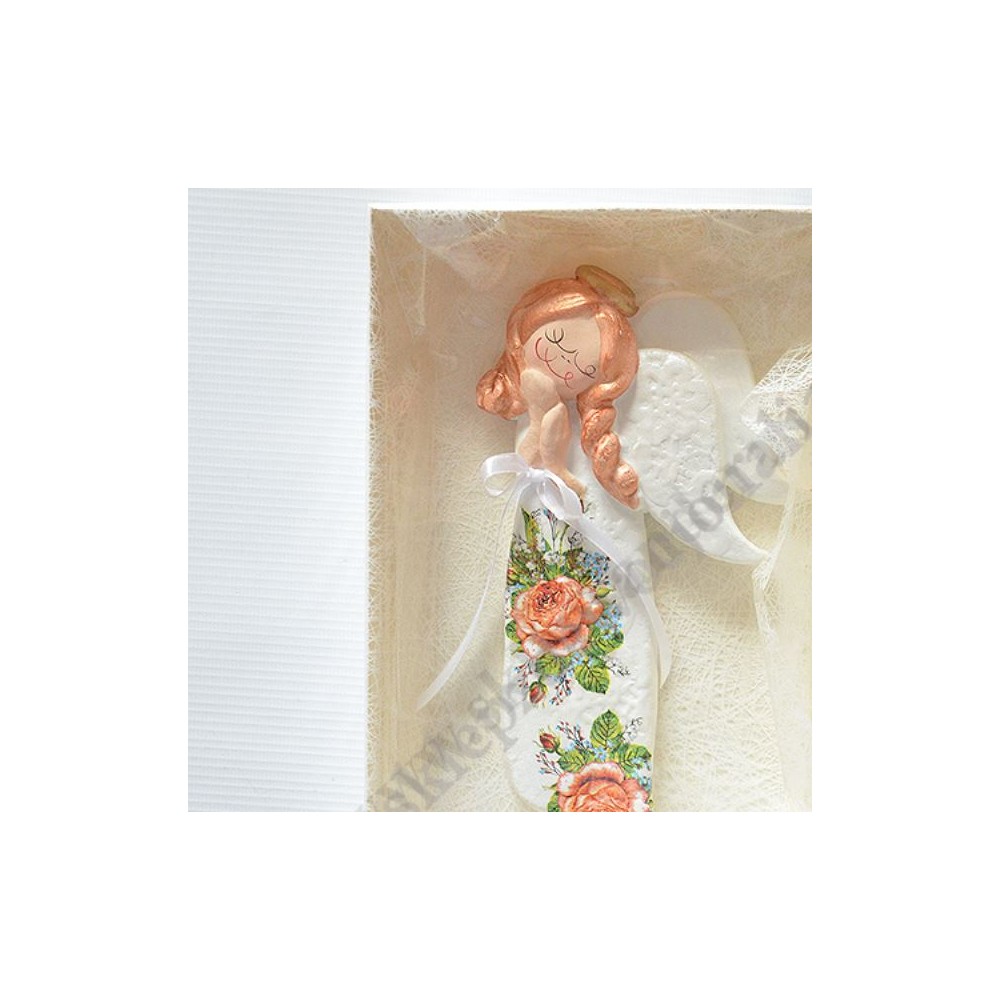 Anioł wykonany z gipsu w postaci pamiątki, ręczne wykonanie. Wysokość anioła ok. 21.5 cm, sprzedaż w miksie wzorów.