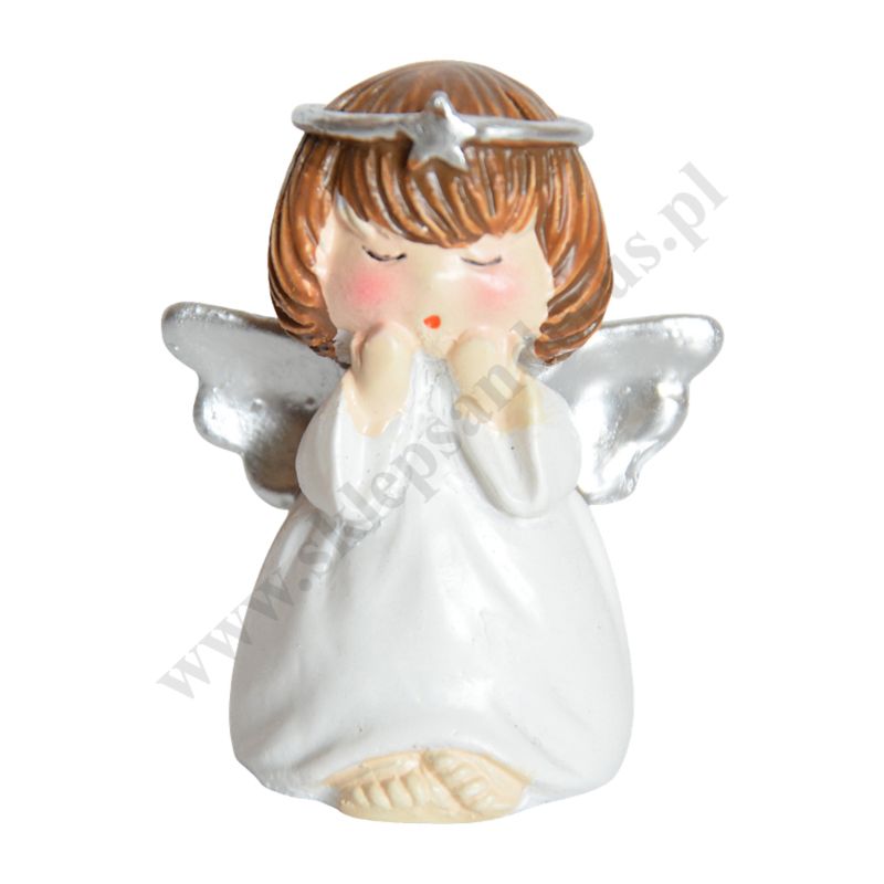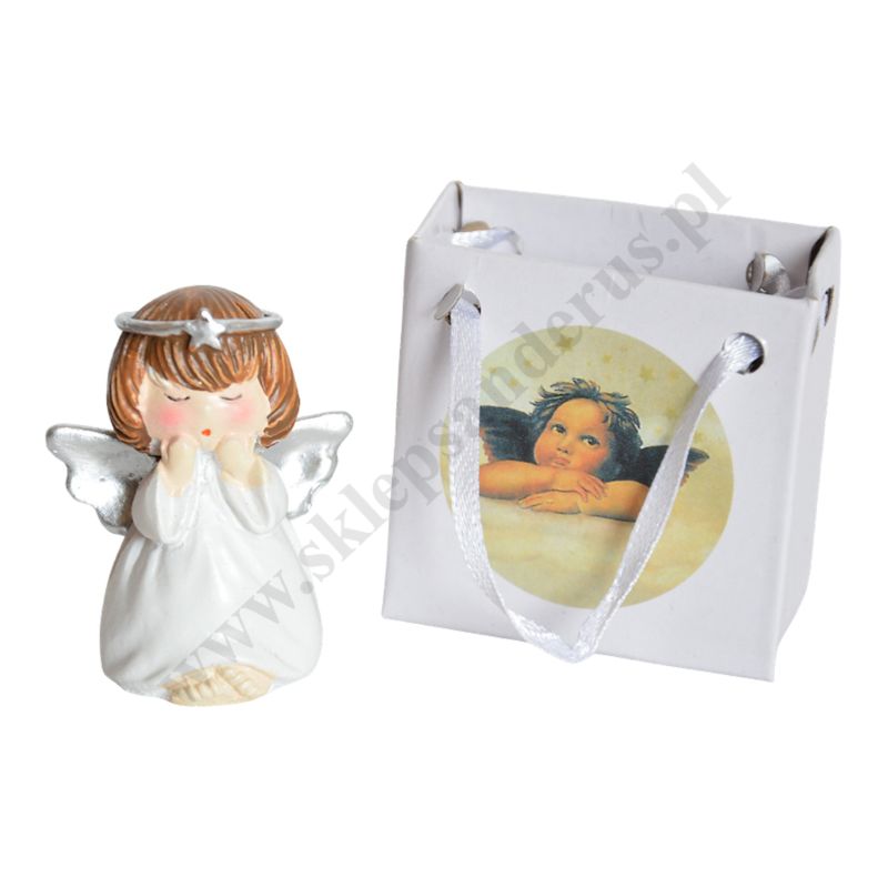Figurka aniołka o wysokości 4.8 cm w papierowej, lakierowanej torebce.