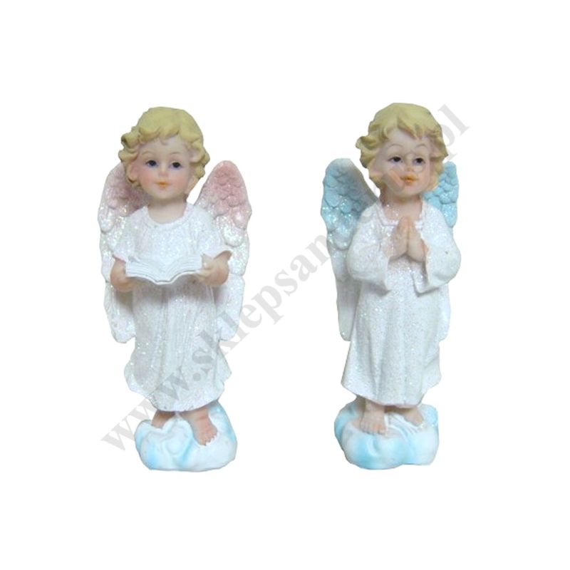 Figurka aniołka o wysokości 11 cm, wykonana tworzywa sztucznego. Sprzedaż w miksie wzorów.
