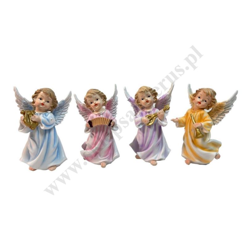 Figurka aniołka wykonana z tworzywa sztucznego o wysokości 15 cm. Sprzedaż w miksie wzorów.