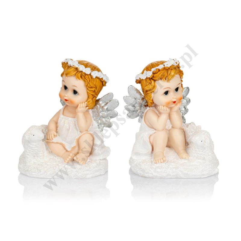 Aniołek o wysokości 17 cm wykonany z żywicy. Sprzedaż w miksie wzorów.