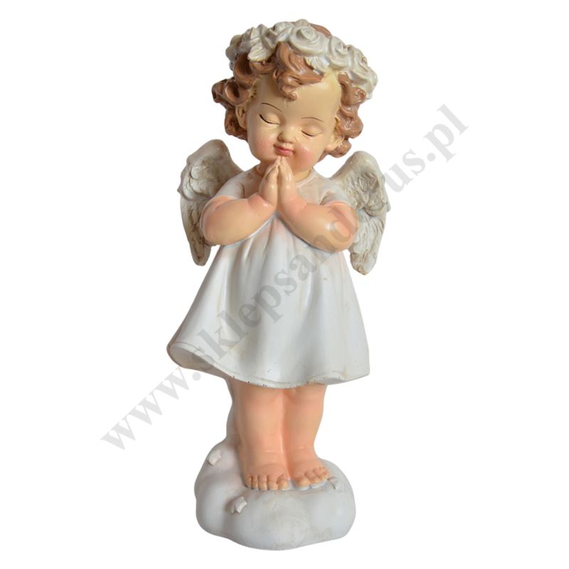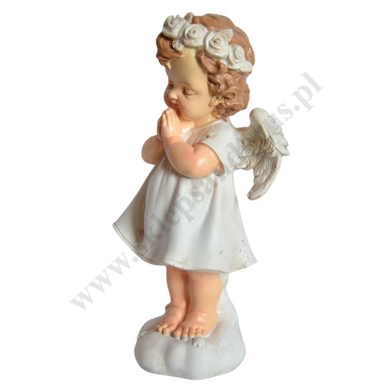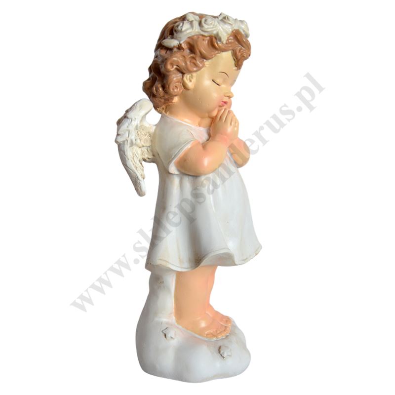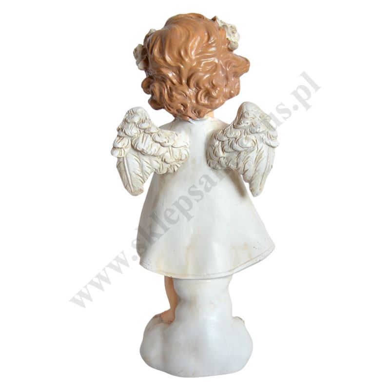 Figurka aniołka wykonana z żywicy o wysokości 22.5 cm i szerokości 10 cm.