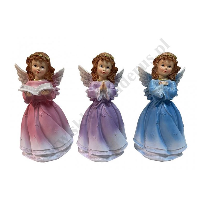 Figurka aniołka wykonana z tworzywa sztucznego o wysokości 27.5 cm. Sprzedaż w miksie wzorów.