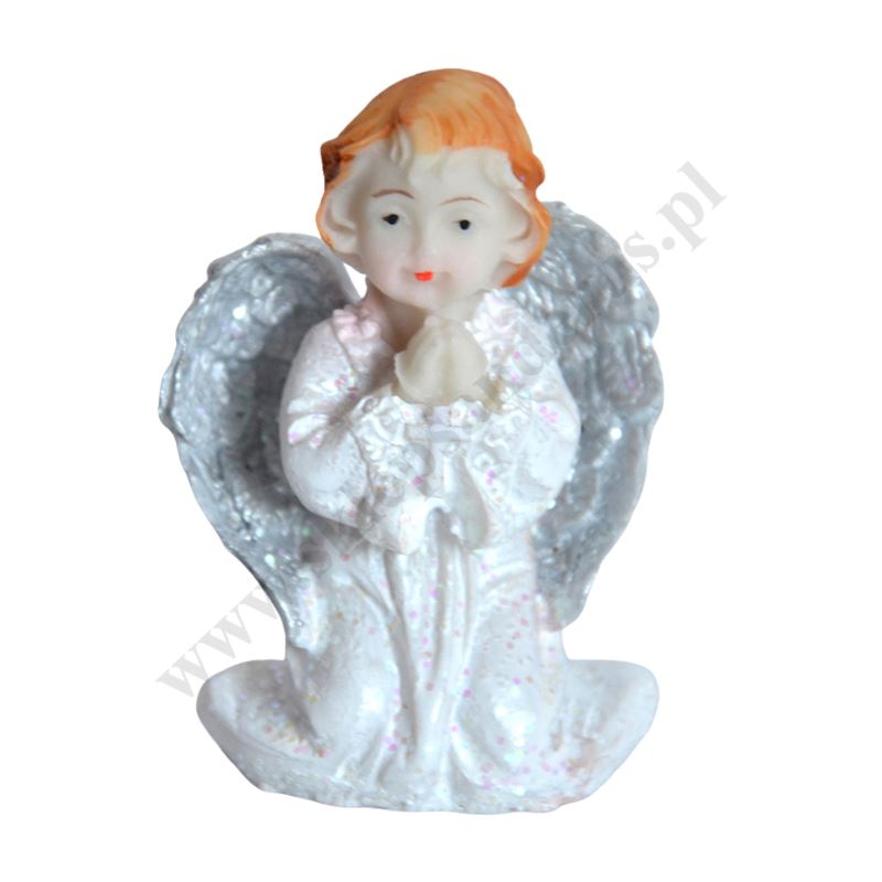 Figurka aniołka wykonana z żywicy o wysokości 5.5 cm i szerokości 4 cm.