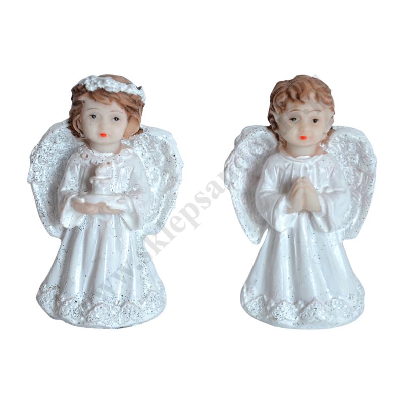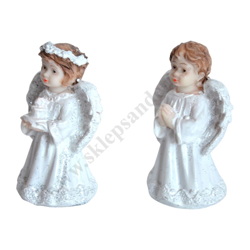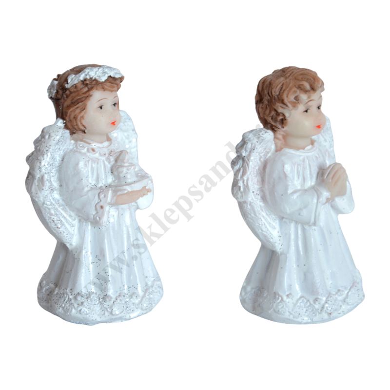 Figurka aniołka wykonana z żywicy o wysokości 5.5 cm i szerokości 3.5 cm. Sprzedaż w miksie wzorów.