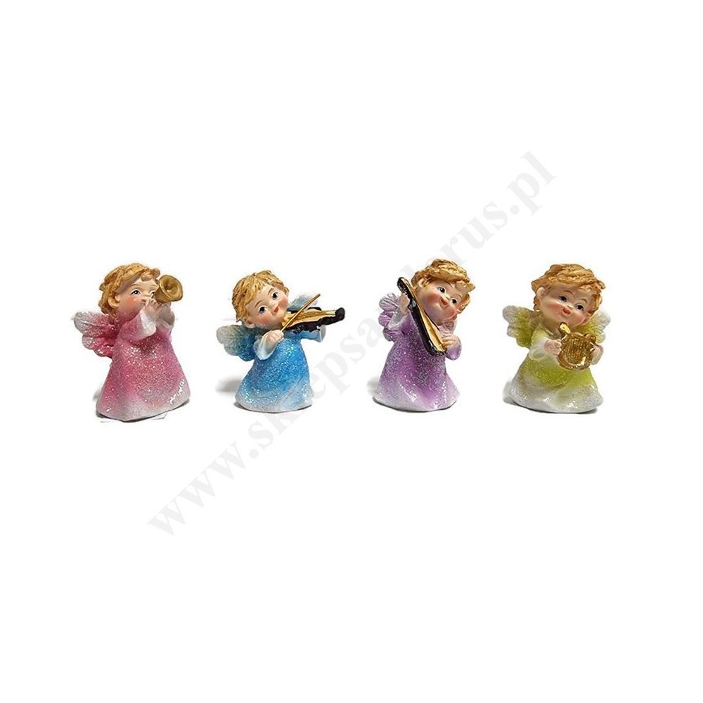 Figurki aniołków z instrumentami o wysokości 6.5 cm. Sprzedaż w miksie wzorów.