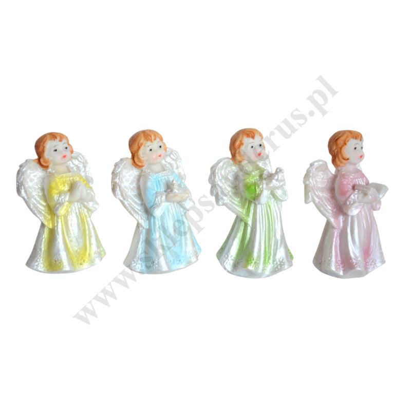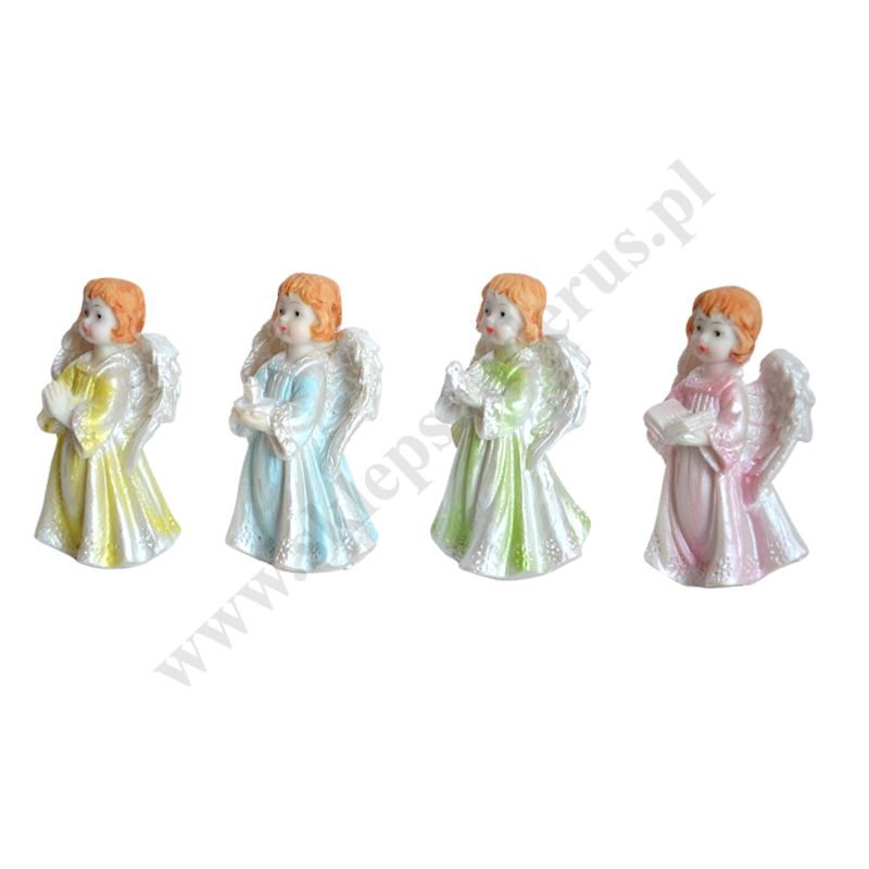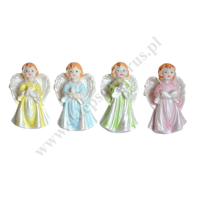 Figurka aniołka wykonana z żywicy o wysokości 7 cm i szerokości 4.3 cm. Sprzedaż w miksie wzorów.