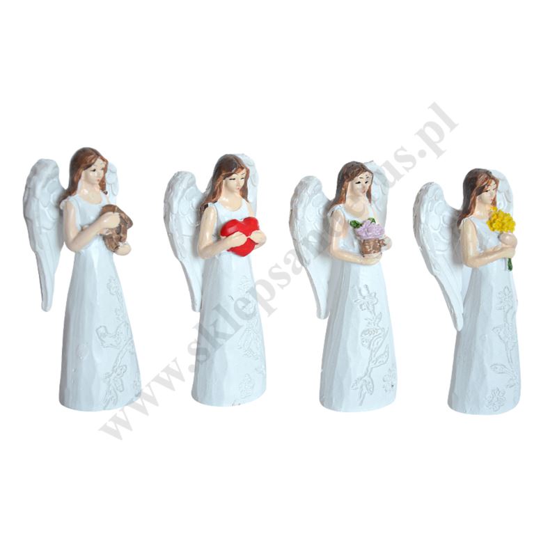 Figurka aniołka wykonana z żywicy o wysokości 8.2 cm i szerokości 4.3 cm. Sprzedaż w miksie wzorów.