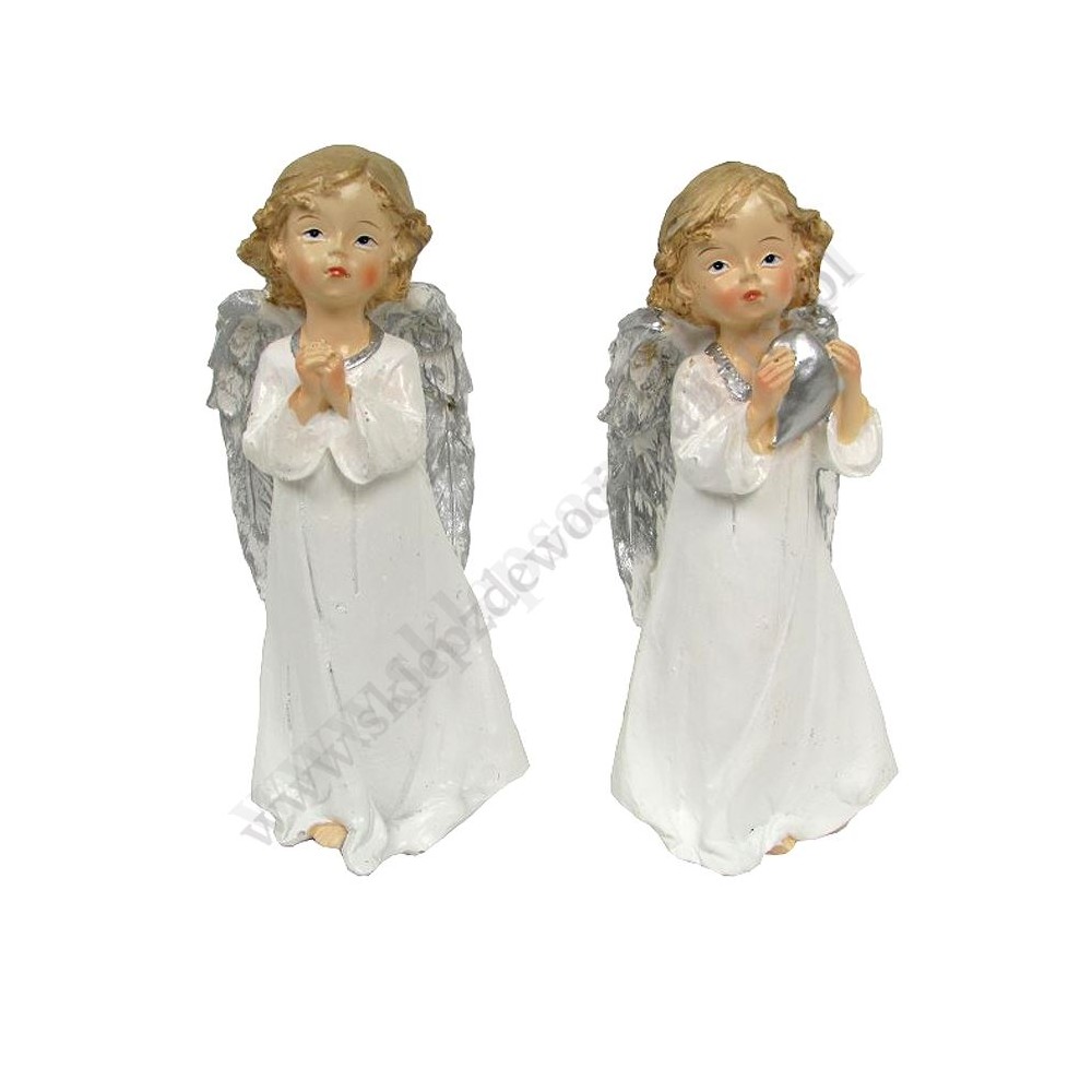 Figurki aniołka o wysokości 19 cm wykonane z tworzywa sztucznego. Sprzedaż w miksie wzorów.