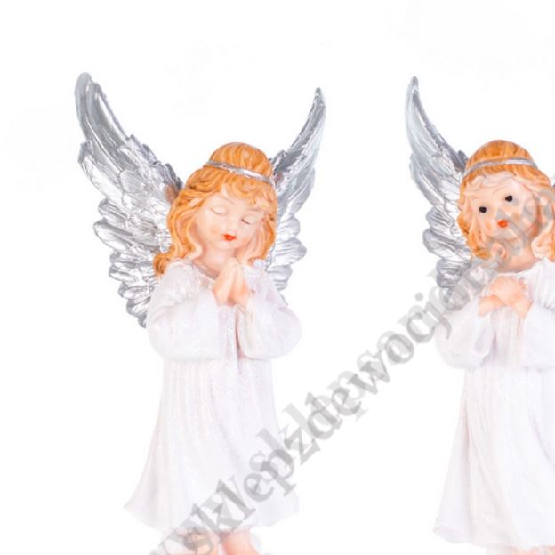 Figurka aniołka wykonana z tworzywa sztucznego o wymiarach 13 x 9 x 26 cm.
