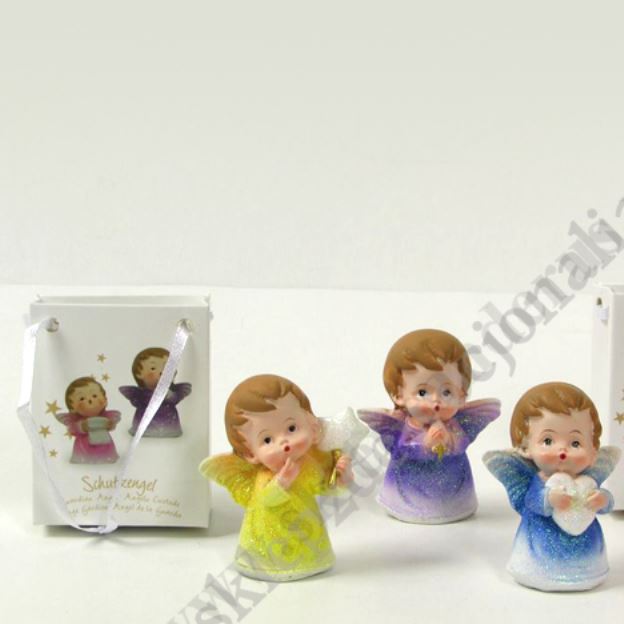 Figurka aniołka wykonana z tworzywa sztucznego w prezentowej torebeczce.