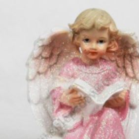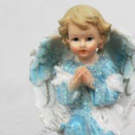 Figurka aniołka wykonana z tworzywa sztucznego o wysokości 9 cm, dostępne dwa wzory aniołka.