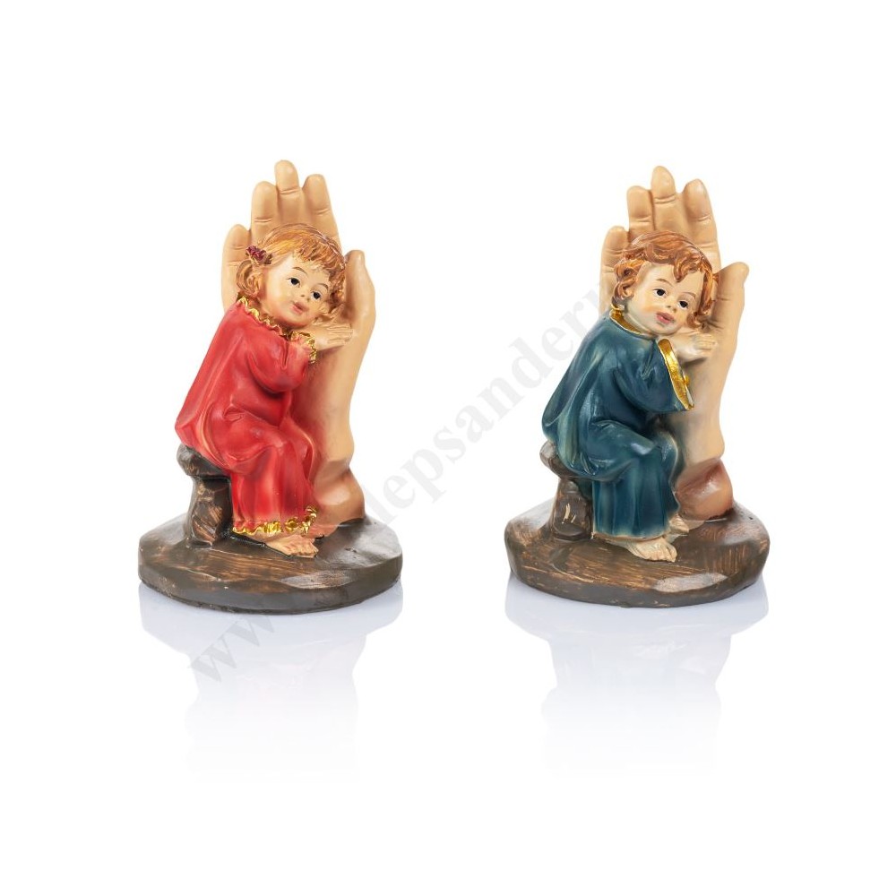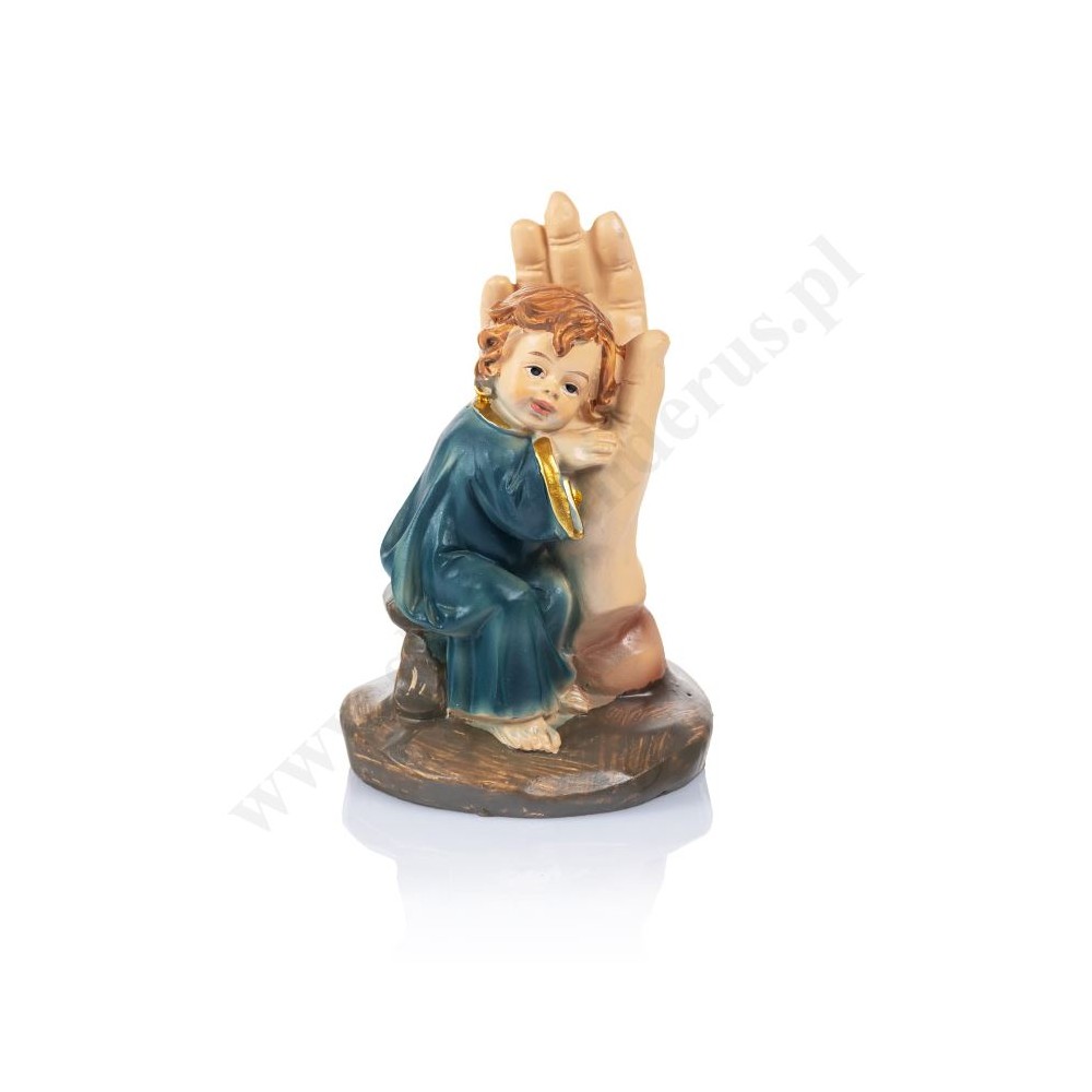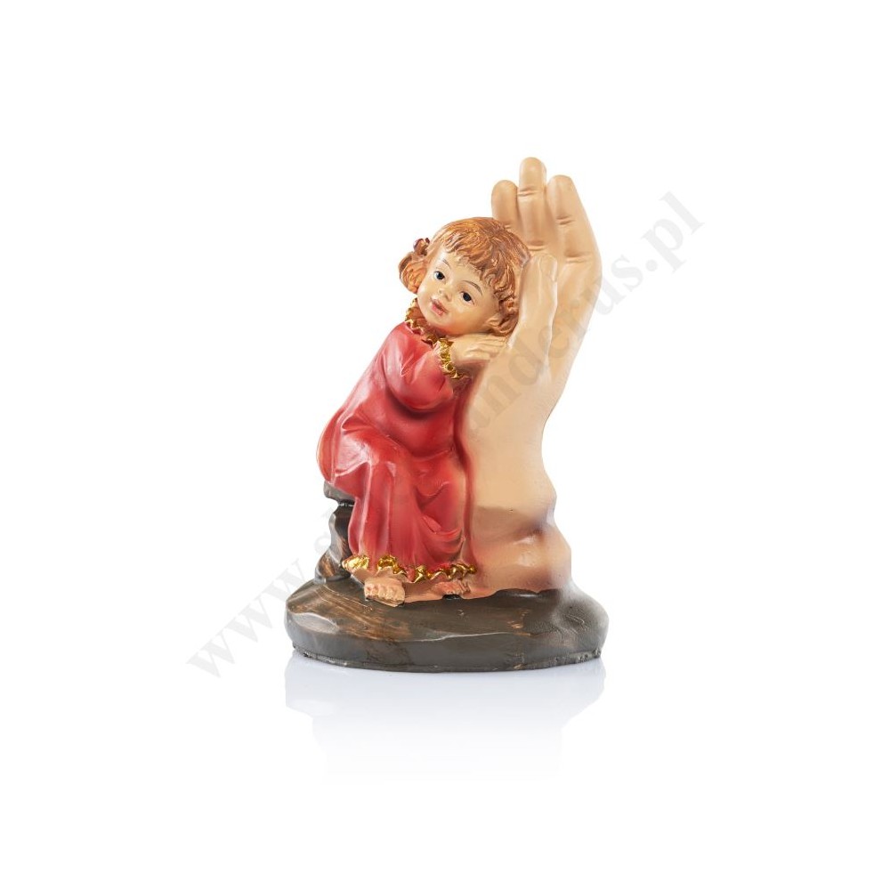 Figurka wykonana z żywicy przedstawiająca dziecko w ręce Opatrzności Bożej o wysokości 10.5 cm. Figurka dostępna w dwóch kolorach.