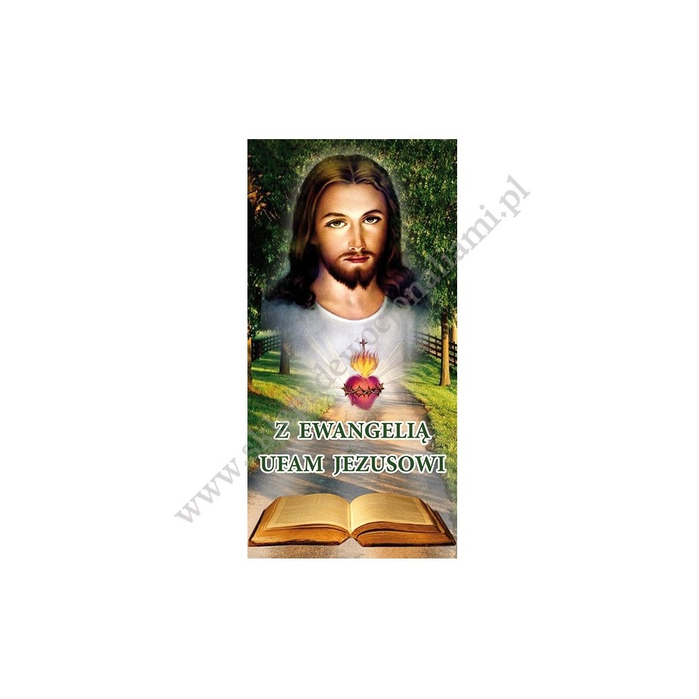 Okolicznościowa dekoracja kościoła w postaci banera wydrukowanego w wysokiej rozdzielczości, na bardzo dobrej jakości materiale odpornym na wszelkie warunki atmosferyczne.