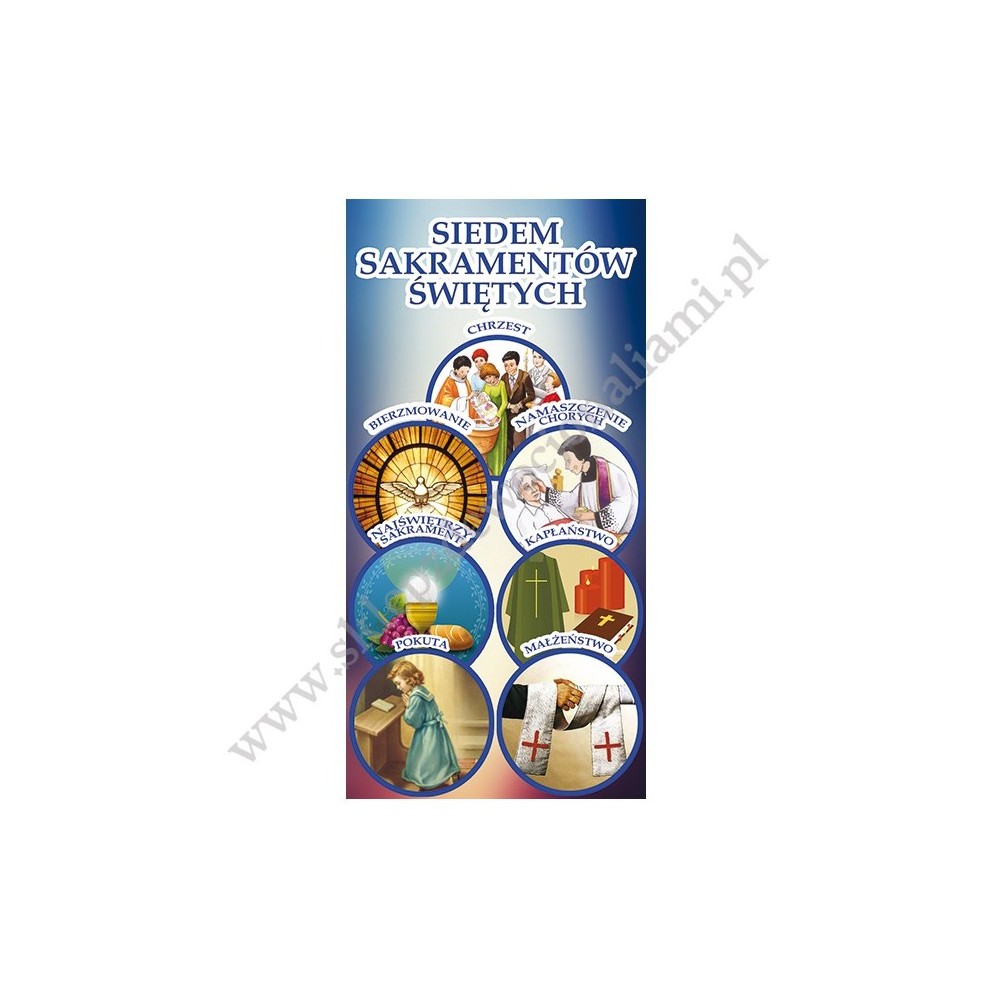 Katechetyczna dekoracja, pomoc katechetyczna przedstawiająca Siedem Sakramentów Świętych w postaci banera wydrukowanego w wysokiej rozdzielczości na bardzo dobrej jakości materiale odpornym na wszelkie warunki atmosferyczne.