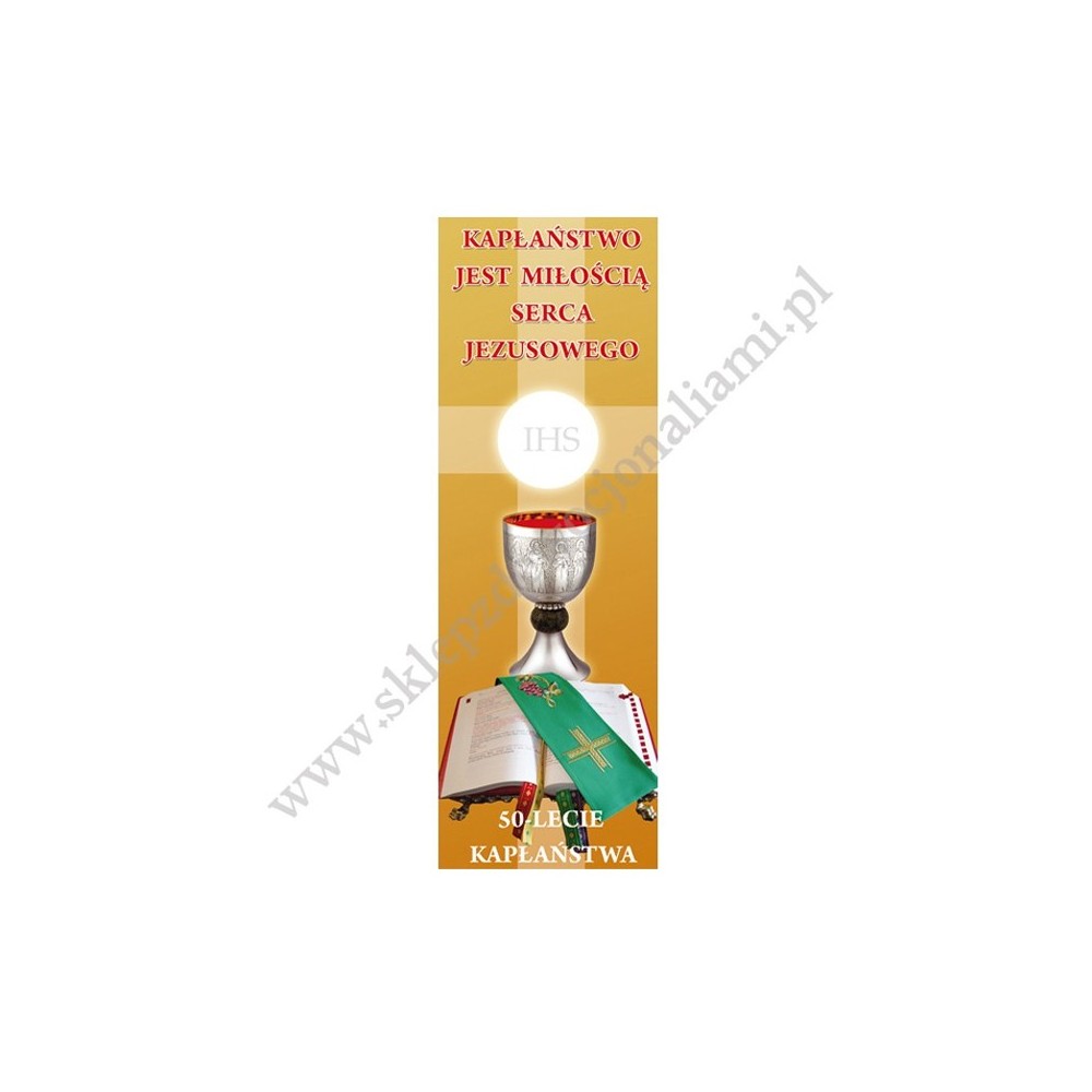 Dekoracja z okazji jubileuszu kapłaństwa w postaci banera wydrukowanego w wysokiej rozdzielczości na bardzo dobrej jakości materiale odpornym na wszelkie warunki atmosferyczne.