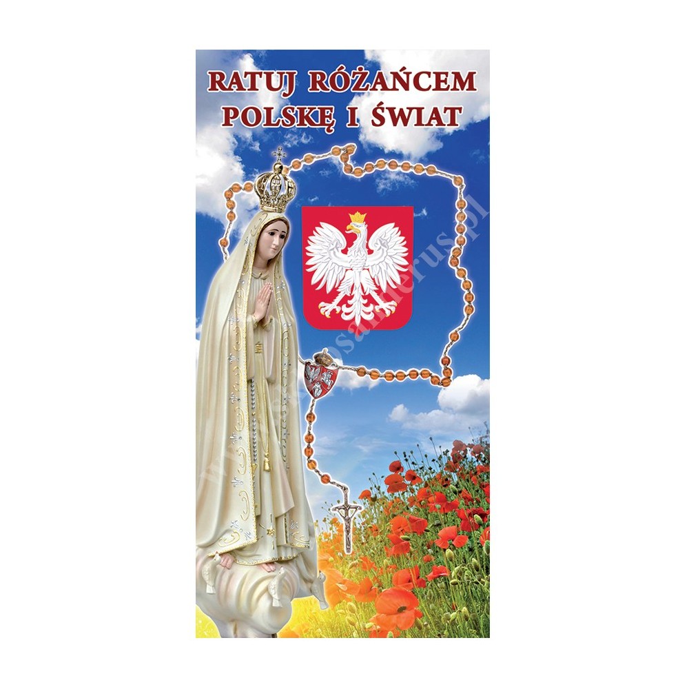 Dekoracja różańcowa w postaci banera wydrukowanego w wysokiej rozdzielczości na bardzo dobrej jakości materiale odpornym na wszelkie warunki atmosferyczne.