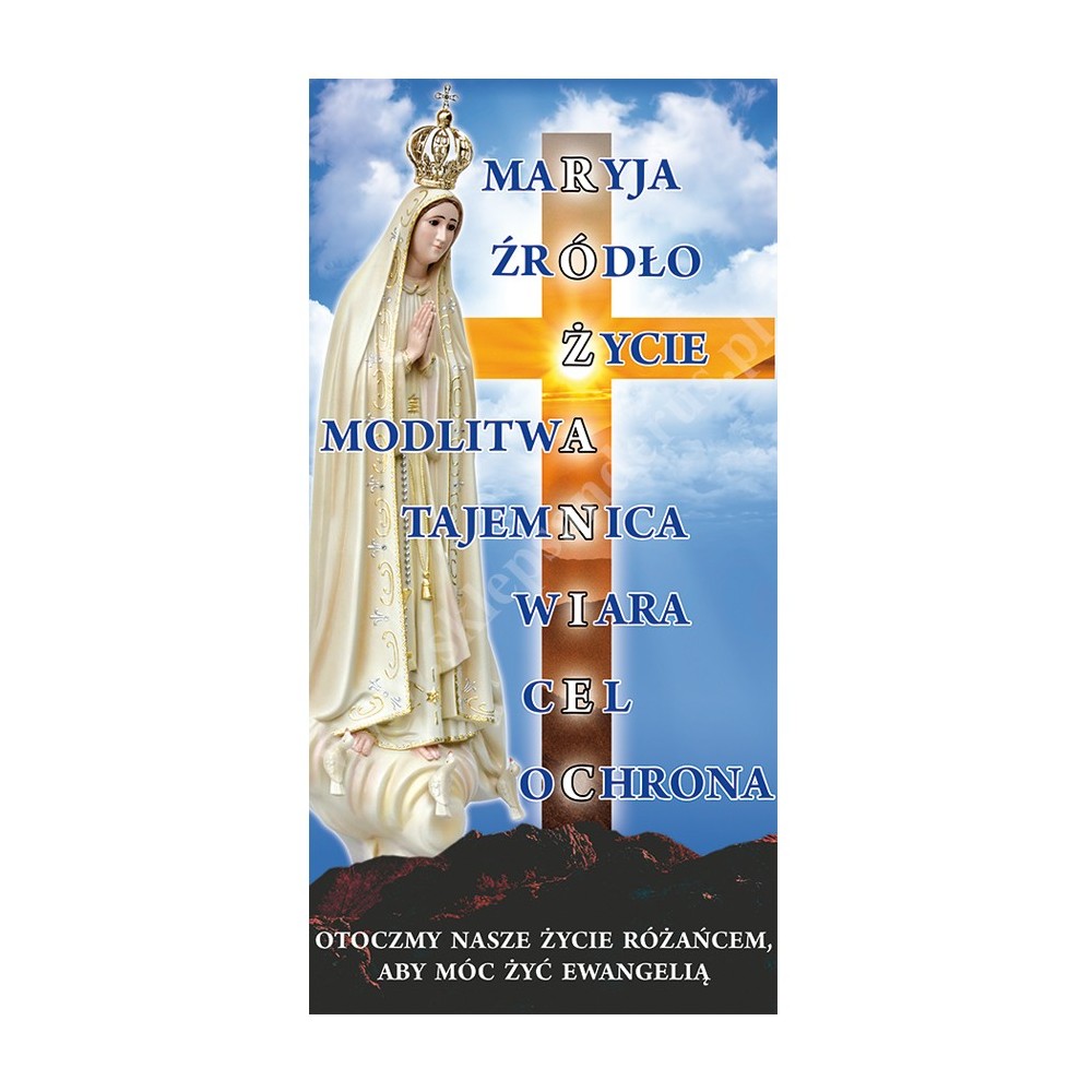 Dekoracja różańcowa w postaci banera wydrukowanego w wysokiej rozdzielczości na bardzo dobrej jakości materiale odpornym na wszelkie warunki atmosferyczne.
