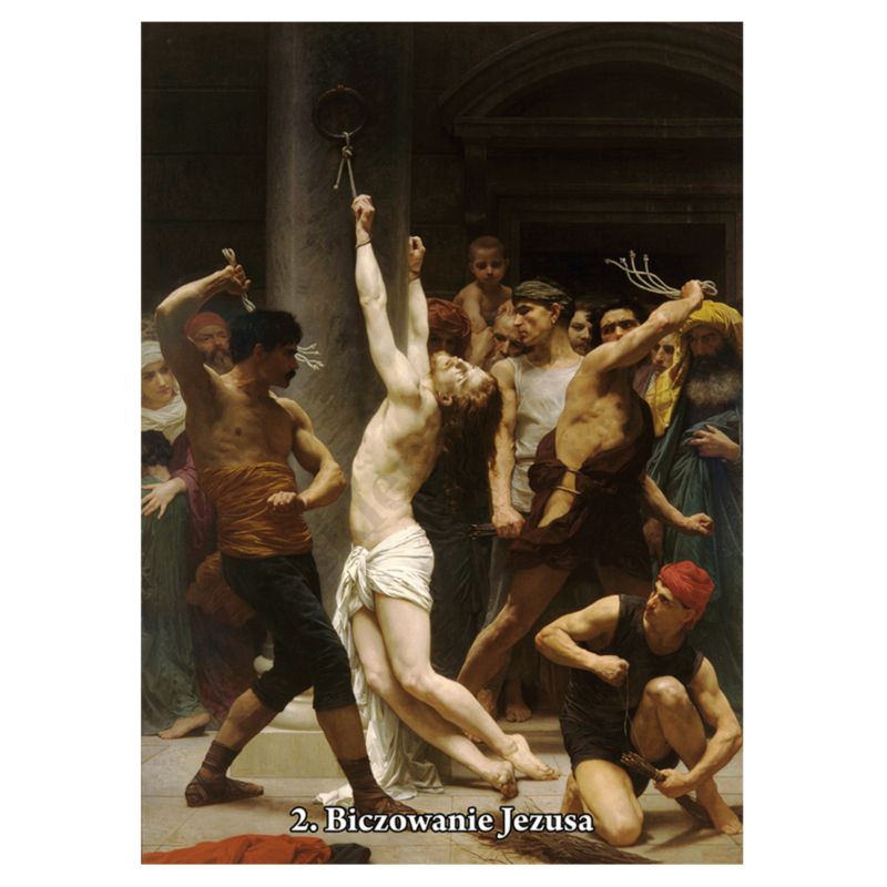 WYPRZEDAŻ!!! Baner dekoracyjny przedstawiający scenę Biczowanie Pana Jezusa w wymiarze: szerokość 1.48 m, wysokość 2.1 m, wykończenie: rękawy góra/dół. Baner wydrukowany w wysokiej rozdzielczości na bardzo dobrejjakości materiale odpornym na wszelkie warunki atmosferczyne.