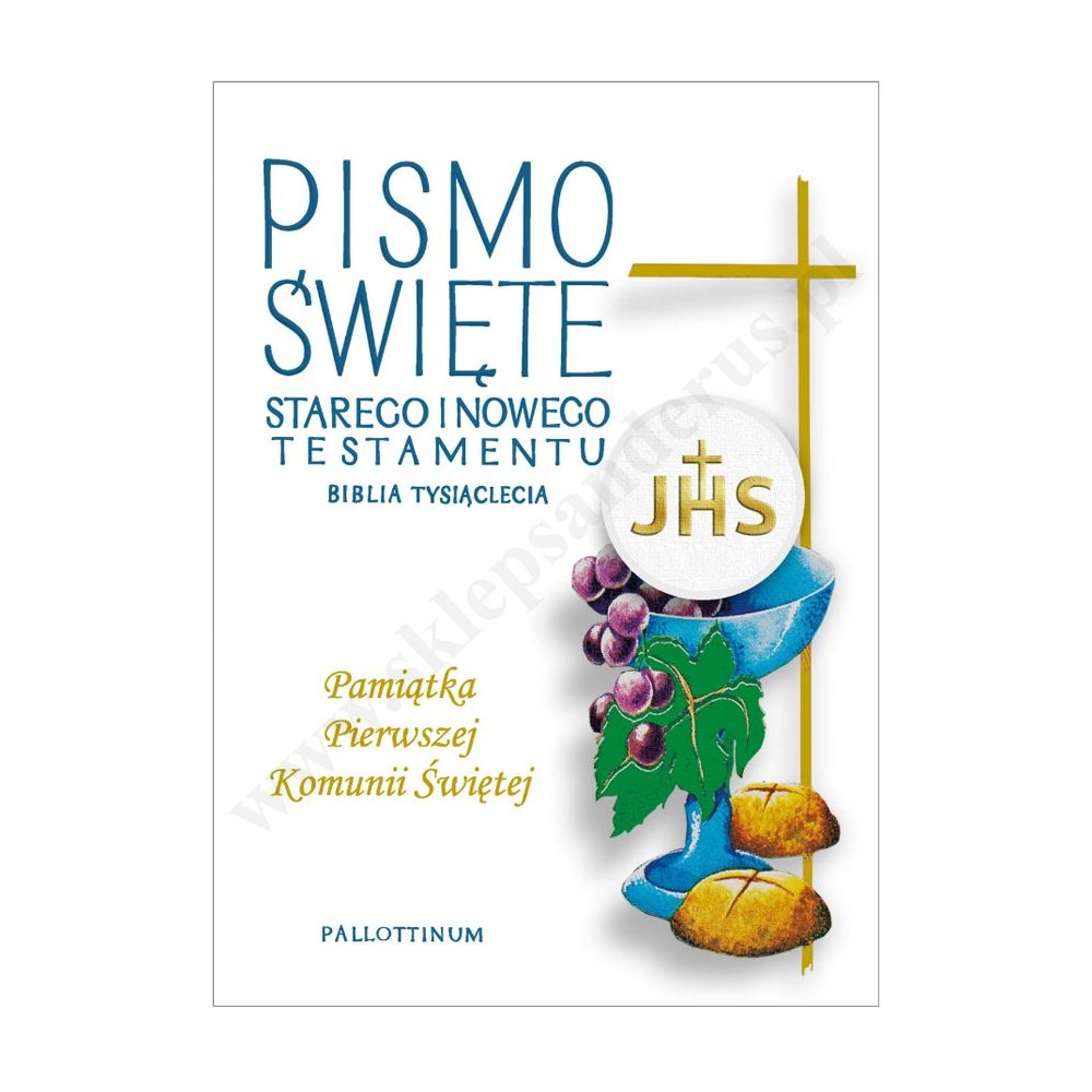 Polecamy Państwu eleganckie i praktyczne wydanie Biblii Tysiąclecia, oprawione w twardą oprawę z dodatkową wkładką i kolorową obwolutą na I Komunię Świętą.
