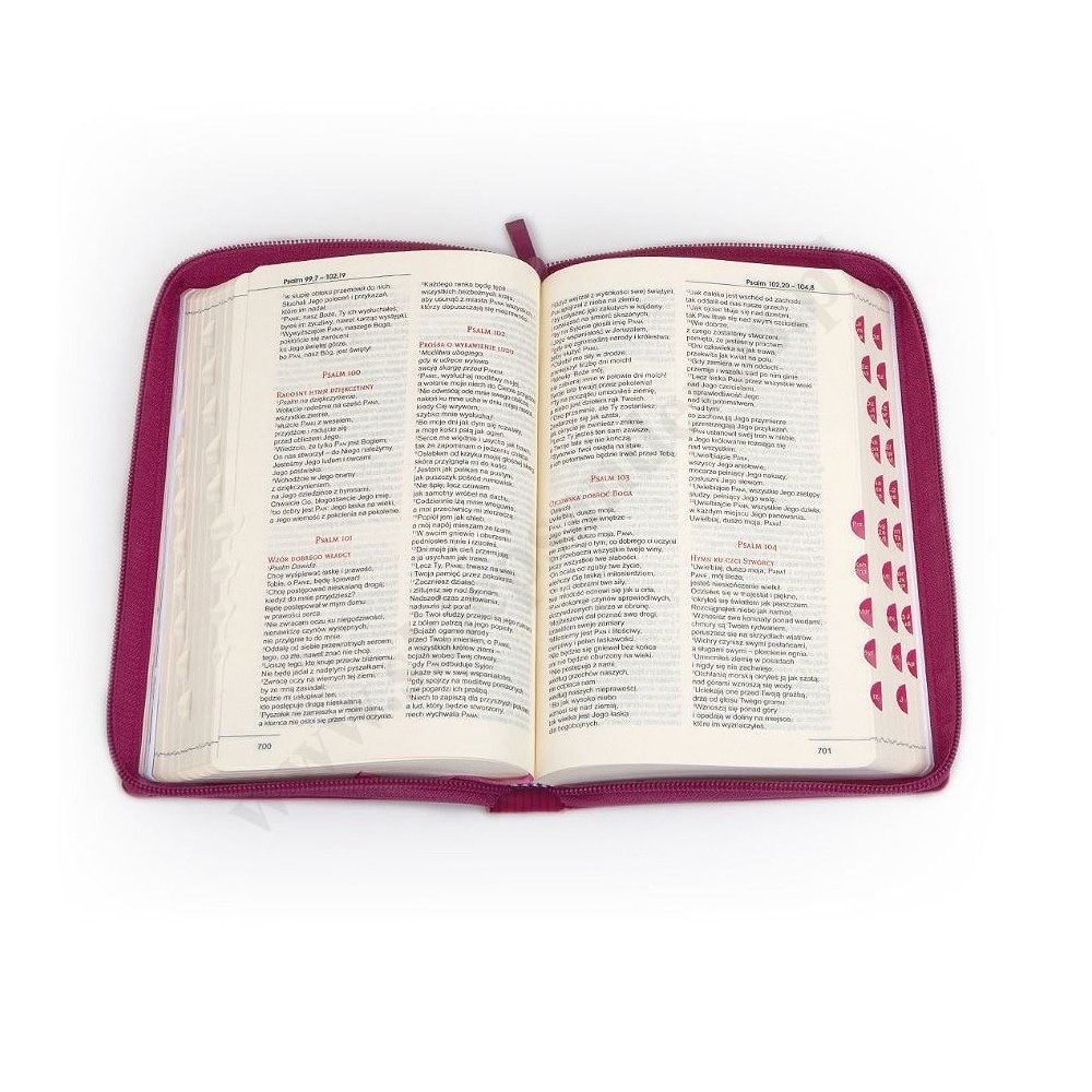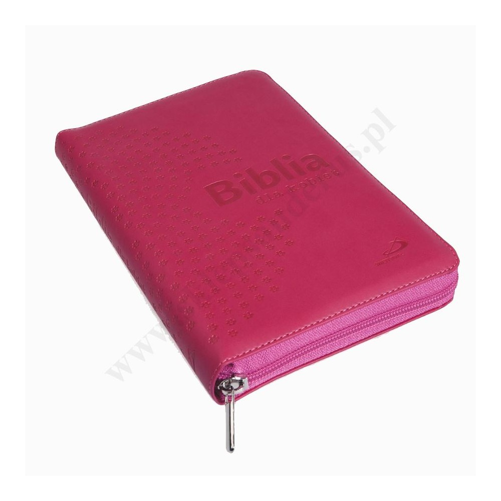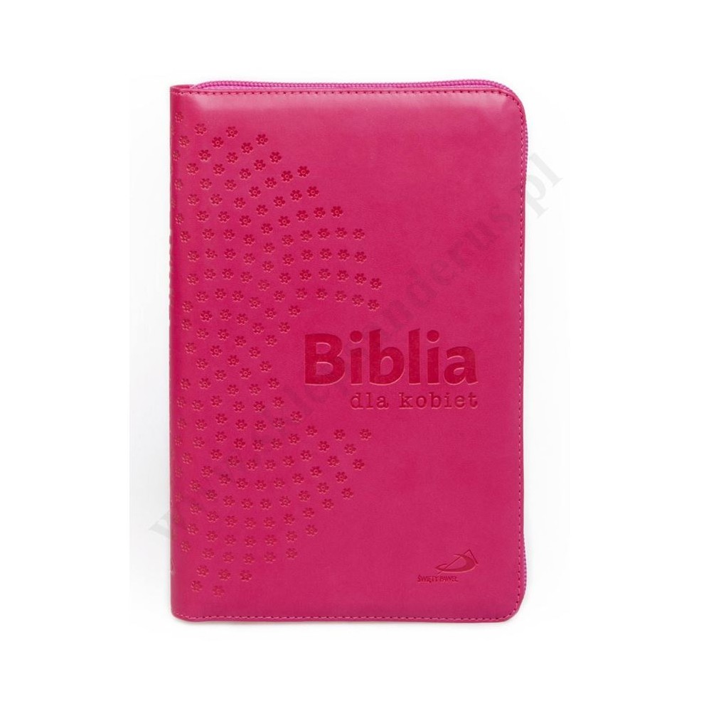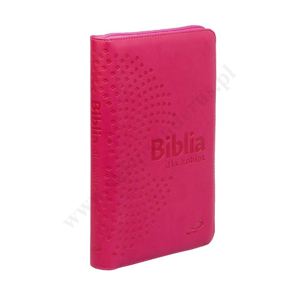 BIBLIA DLA KOBIET - suwak, paginator, złocone brzegi kartek, malinowa