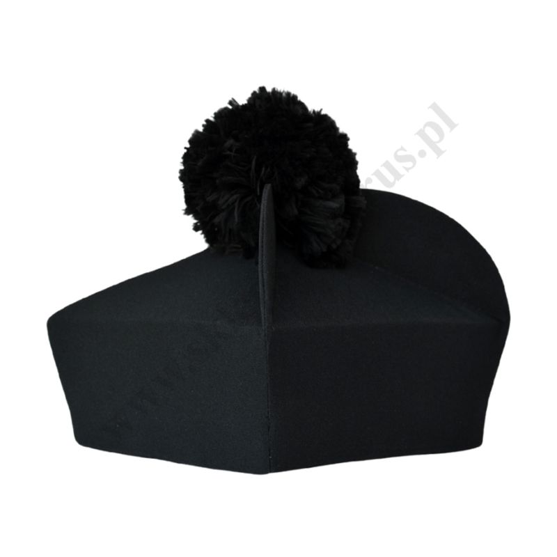 Biret czarny trójrożny usztywniany, składany, wykonany ze streczu.
