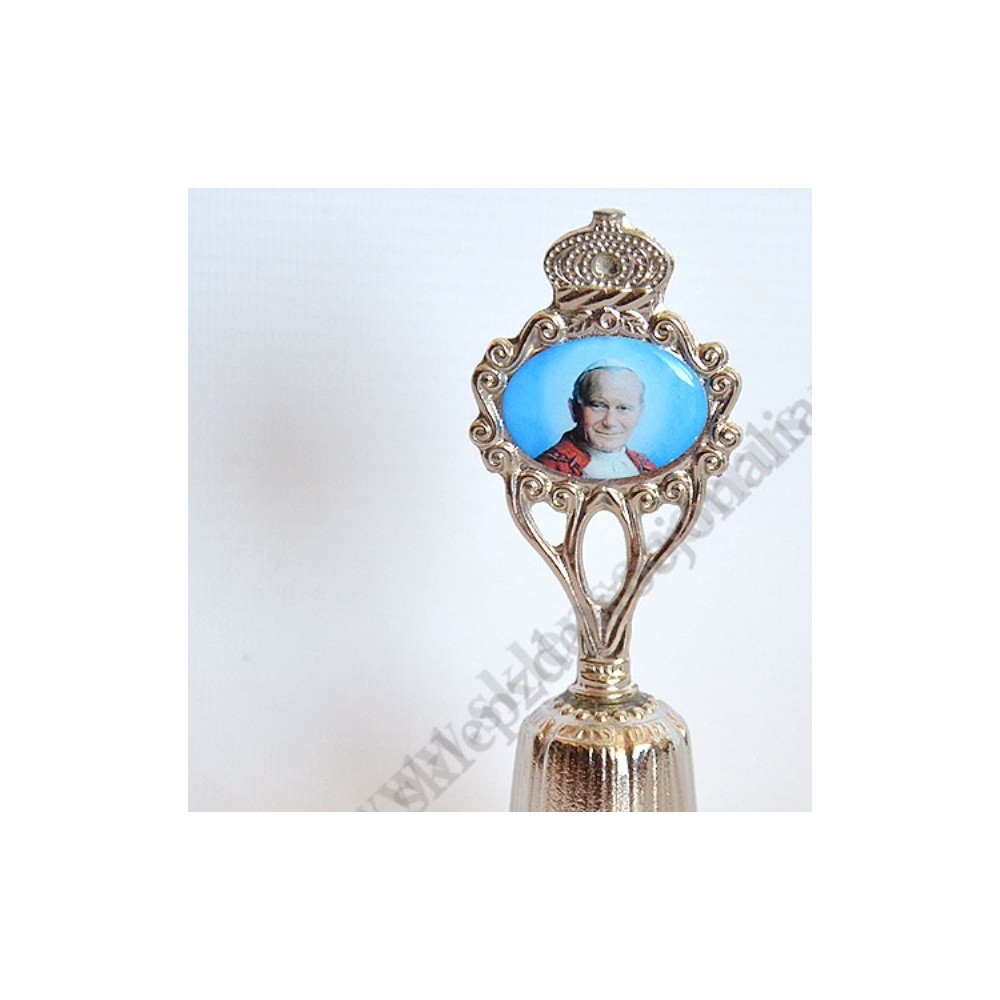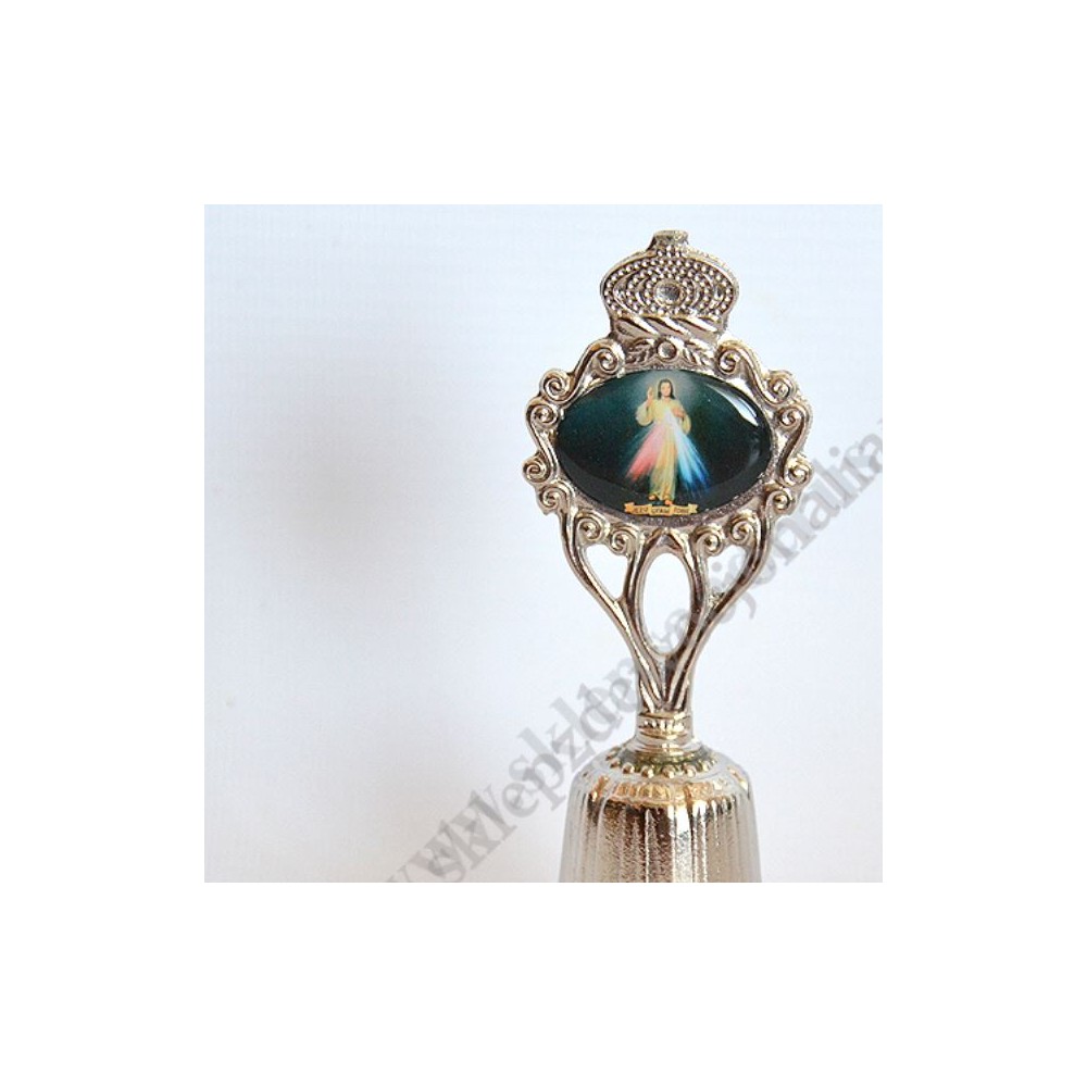 Dzwonek metalowy o wysokości 12 cm i średnicy 4.7 cm.