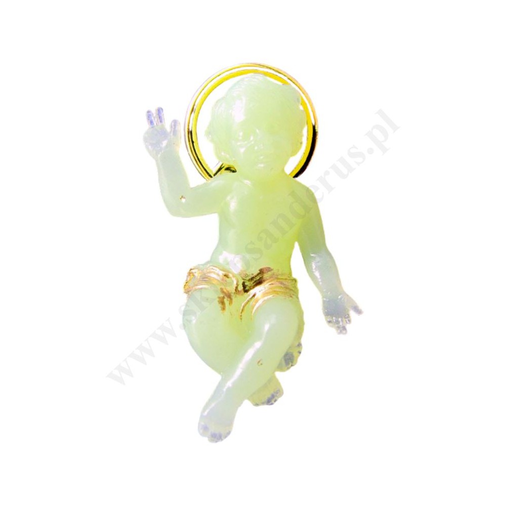 Figurka Dzieciątka Jezus o wysokości 4.5 cm, wykonana z tworzywa sztucznego, fosforyzującego.