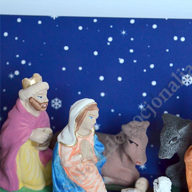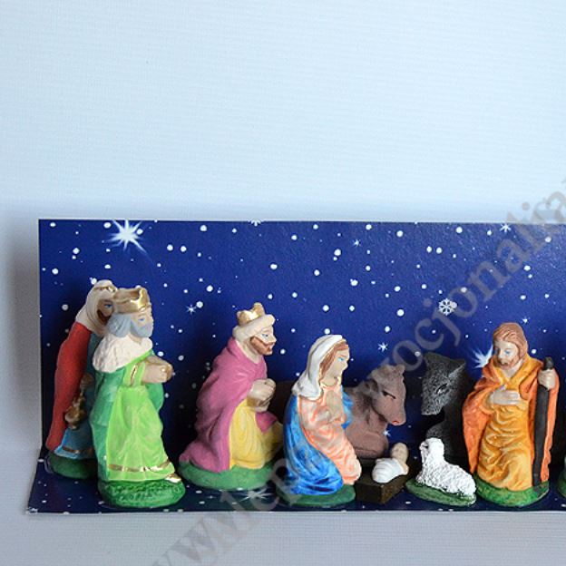 Figurki do szopki z masy gipsowej, ręcznie malowane. Wysokość figurek od 8 do 10 cm.