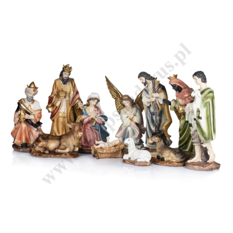 Komplet figur do szopki wykonanych z tworzywa sztucznego o wysokości najwyższej figury 30 cm.