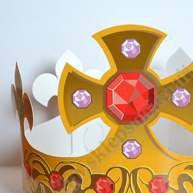 Kartonowa korona na Orszak Trzech Króli, dostępna w trzech wzorach. Regulowany obwód głowy.