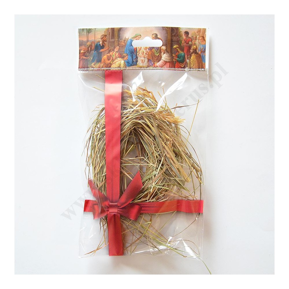 Sianko wigilijne na stół wigilijny, zapakowane w celofanowym woreczku z bożonarodzeniową grafiką.