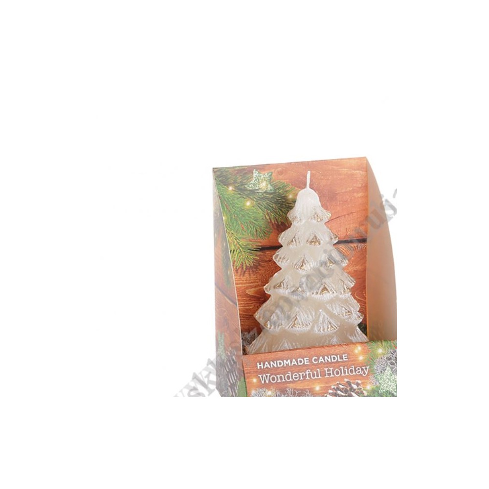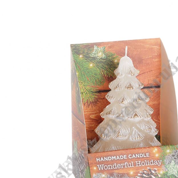 Świąteczna świeca w postaci choinki o wysokości 12 cm. Zapakowane w gustowne pudełeczko.