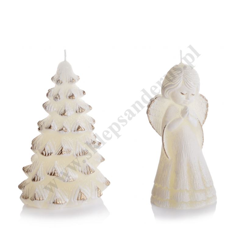 Świąteczna świeca w postaci choinki lub aniołka o wysokości 11 cm. Zapakowane w gustowne pudełeczko. Sprzedaż w miksie wzorów.
