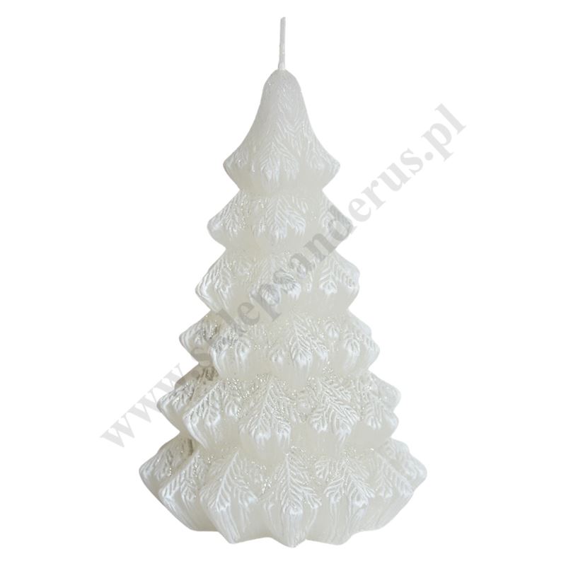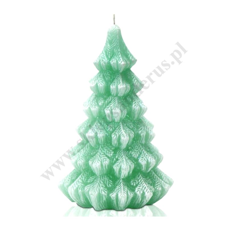 Świeca w kształcie choinki o wysokości 15 cm i szerokości 9.5 cm. W świecy wbudowany jest dodatkowo światłowód, który w momencie palenia się świecy sam daje od wewnątrz świecy różnokolorowy blask. Sprzedaż w miksie kolorów.