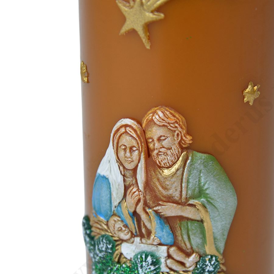 Świeca bożonarodzeniowa parafinowo-woskowa z aplikacją Świętej Rodziny o