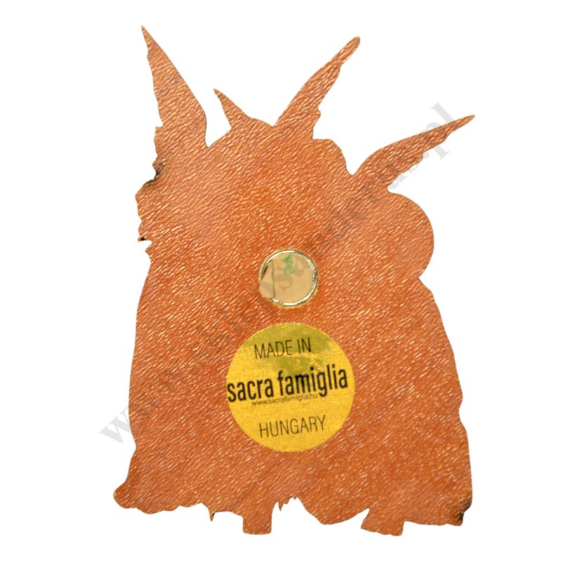 Dekoracja bożonarodzeniowa w postaci magnesu wykonanego na sklejce przedstawiającej Świętą Rodzinę, wysokość sklejki 7 cm, szerokość 5 cm.