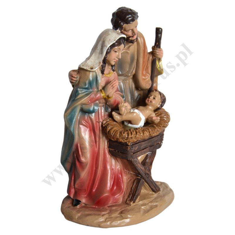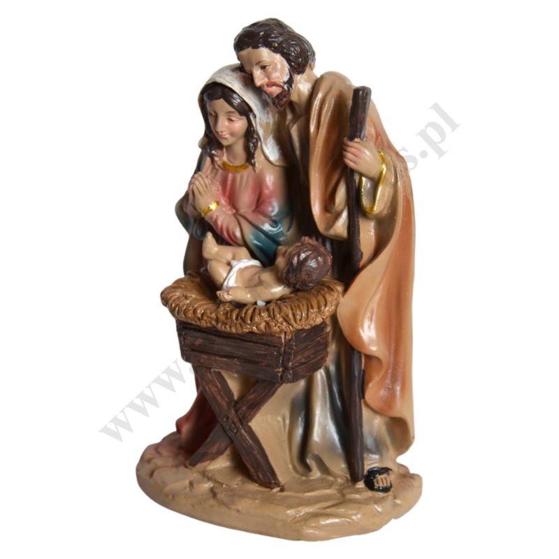 Figurka Świętej Rodziny wykonana z żywicy o wysokości 15.5 cm, szerokości 10 cm i głębokości 7 cm