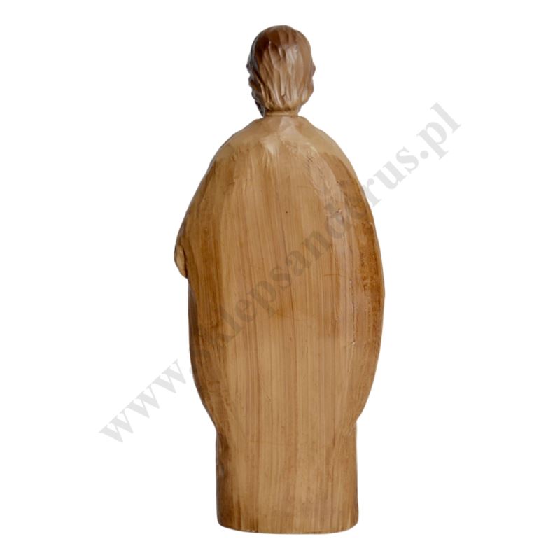Figurka Świętej Rodziny wykonana z tworzywa imitującego drewno, starannie wykonana i pomalowana. Wysokość figurki 19.8 cm, szerokość 8.2 cm.