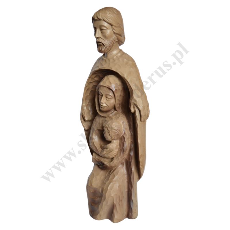 Figurka Świętej Rodziny wykonana z tworzywa imitującego drewno, starannie wykonana i pomalowana. Wysokość figurki 30 cm, szerokość 12 cm.